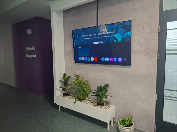 The new school body has a modern architecture, different from that of the Romanian schools in which they learned generations of children. It is bright, with huge windows, generous corridors and full of green, natural plants. Even in the main hall you realize that the walls are actually covered, landscape, with natural, natural muscles.